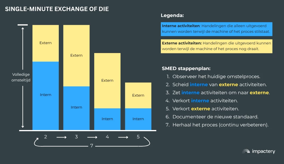 Single Minute Exchange of Dies: een methode om omsteltijden enorm te reduceren.