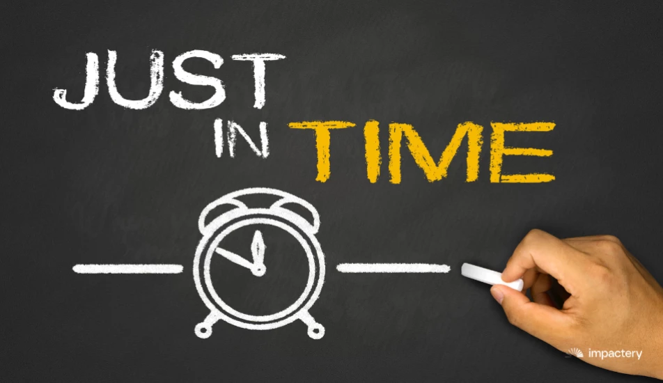 JIT draait om het verlagen van de voorraadniveaus. Opslag kost ruimte en geld. Door alleen de essentiële hoeveelheden materialen te hebben, blijft het proces lean en flexibel. Bijvoorbeeld: een autofabriek die onderdelen ontvangt vlak voordat ze nodig zijn op de assemblagelijn.Afstemmen op Takttijd